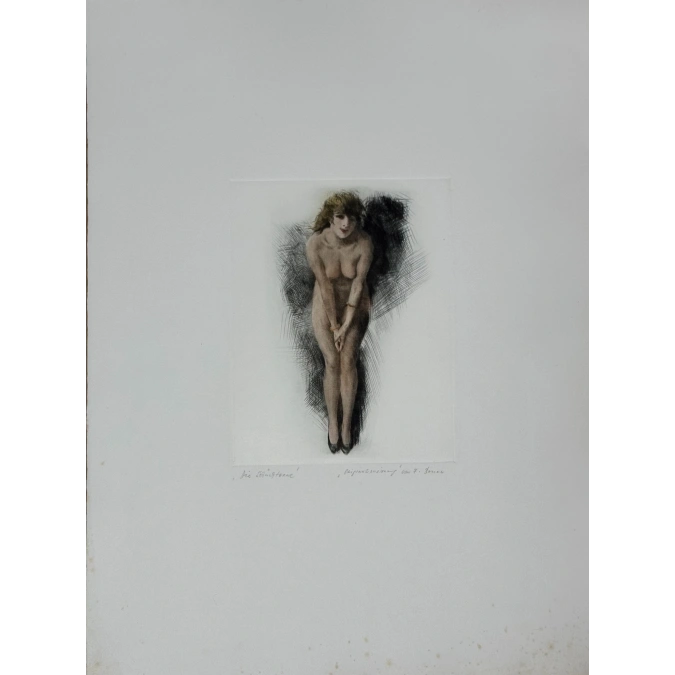 Цветная гравюра с обнаженной девушкой "Звезда" с личной подписью Йозефа Бауэра.