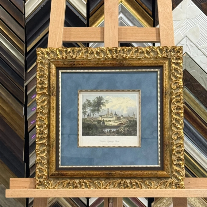 Оформление: двойная рама из итальянского багета, бархатное паспарту, деревянный кант. Такое музейное оформление подчеркивает художественную ценность и обеспечивает долговечность экспонирования.