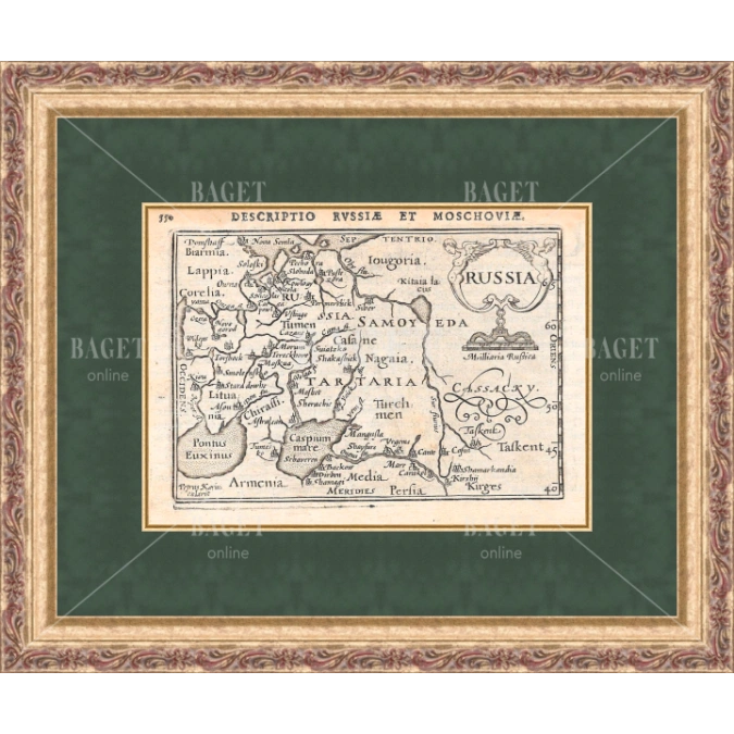 Уникальная гравюра конца XVI века, выпущенная в Амстердаме в 1598 году издателем Корнелисом Клаасом на основе работ Лангенеса и Бертия. Это одно из ранних европейских картографических изображений России, выполненное с характерной точностью эпохи Возрождения.