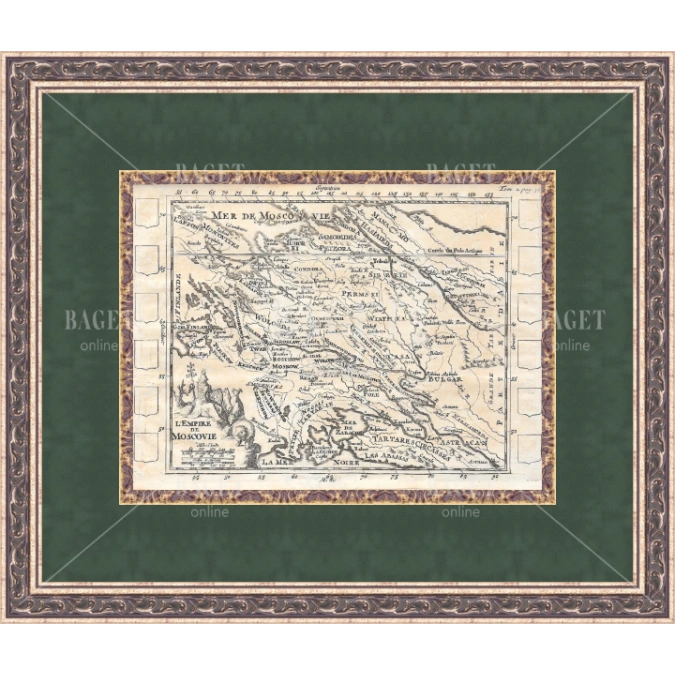 Эта редкая гравюра конца XVII века представляет собой уникальное свидетельство европейского взгляда на Московскую империю. Созданная французским картографом А. Фероте де Ла Круа (A. Pherotee de La Croix), карта была опубликована в издании Cosmographie: Des Herrn de la Croix Geographia Universalis….